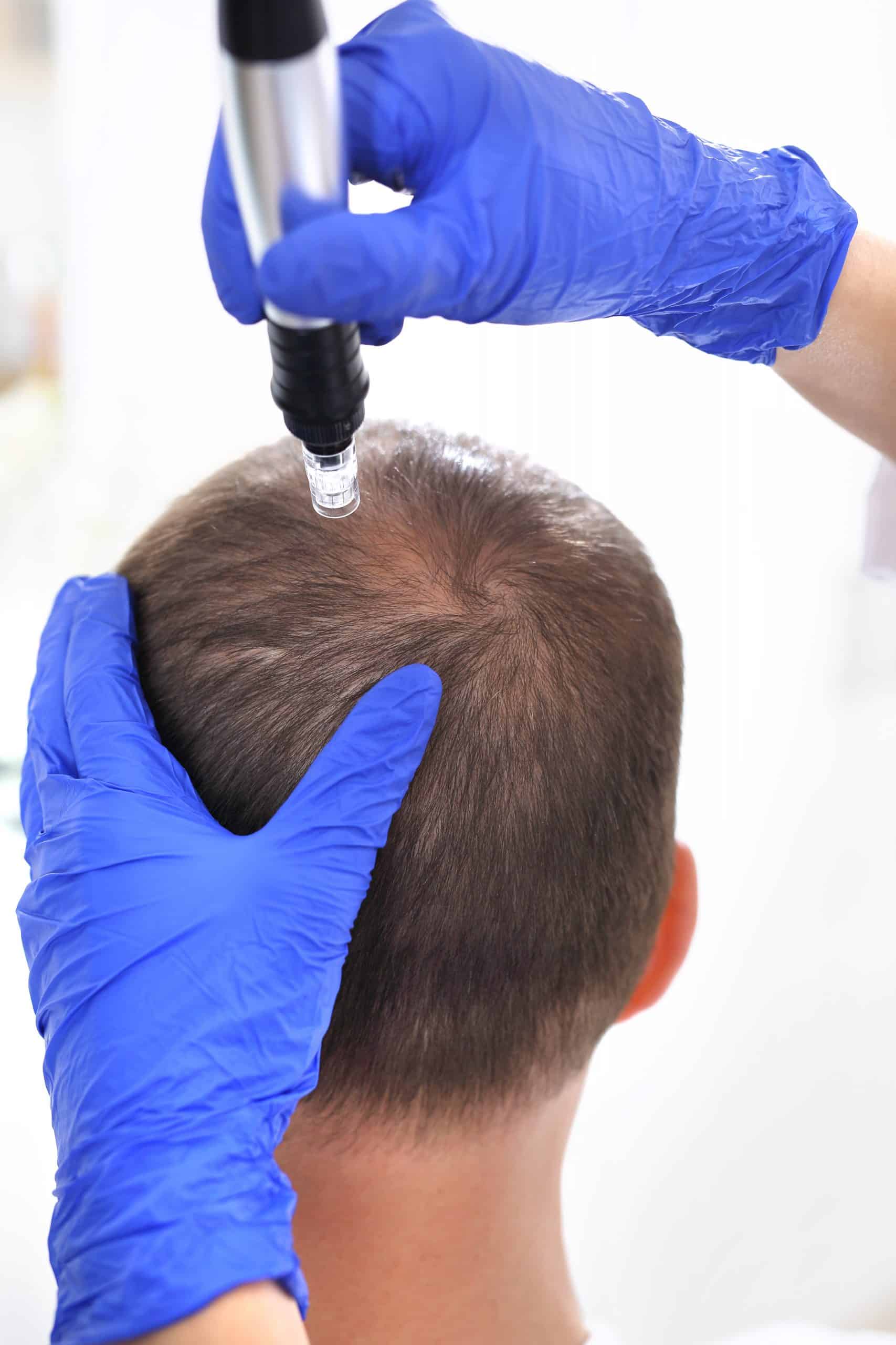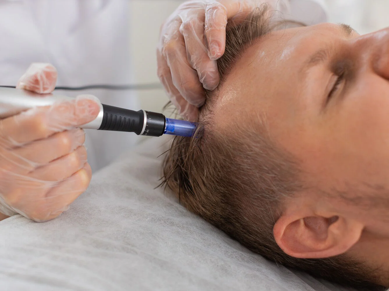 Microneedling Procedure: Using a dermapen, tiny, controlled micro-channels are created in the scalp. These micro-injuries encourage natural healing responses and improve blood flow to hair follicles.